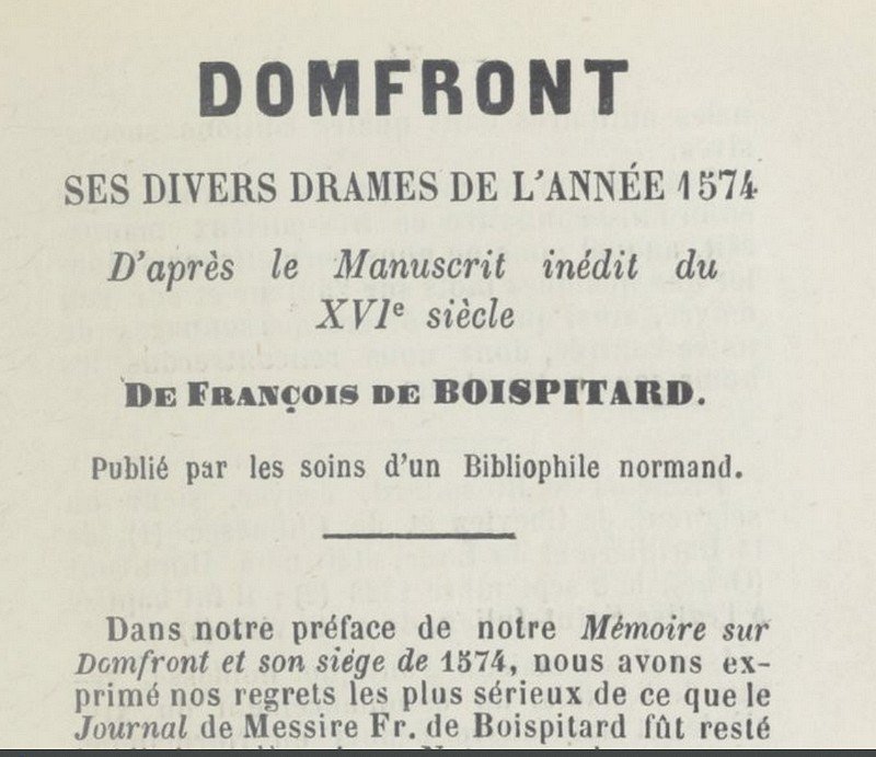 François de Boispitard, noble local a laissé quelques documents dont son journal. L’historien alençonnais Odolant Desnos en fait mention dans son ouvrage.