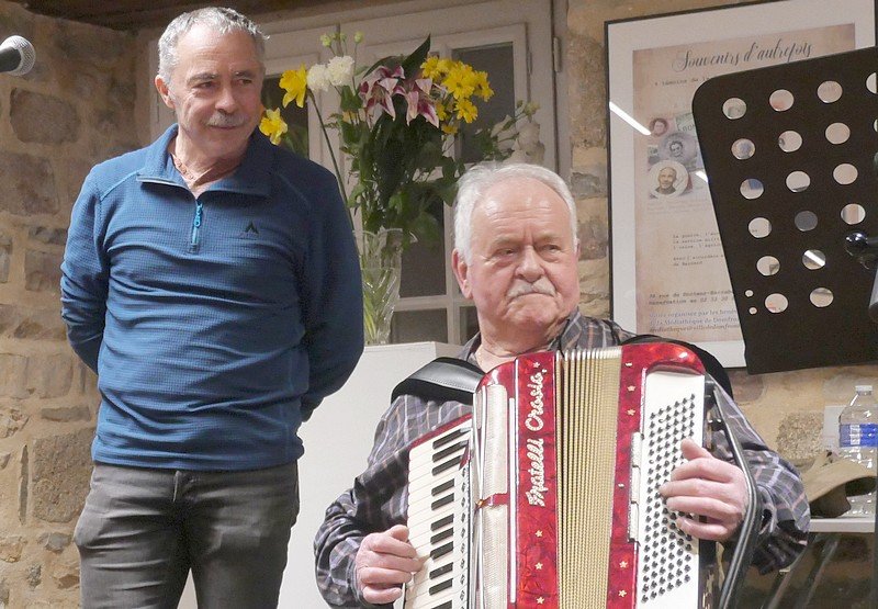 Bernard a animé les intermèdes musicaux de la soirée tant à l’accordéon qu’à l’harmonica. La salle a repris en chœur les refrains de son répertoire.