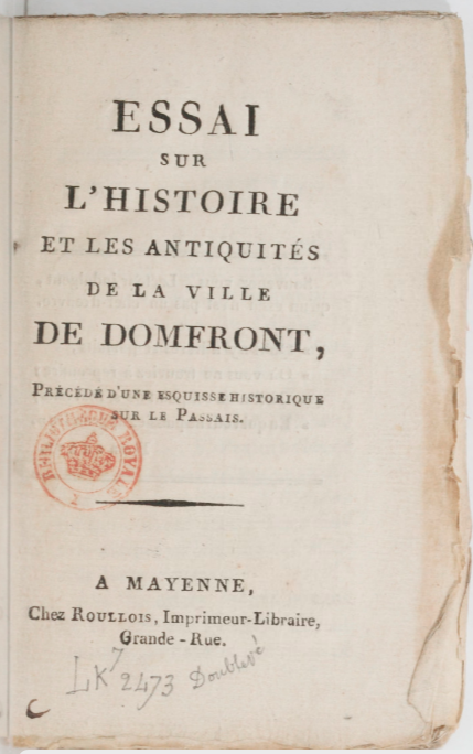 Le 19ème siècle a été pour les historiens domfrontais une période féconde et les publications ont été nombreuses.